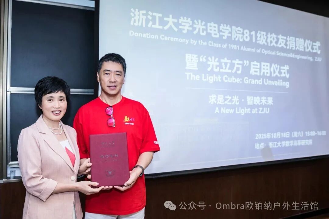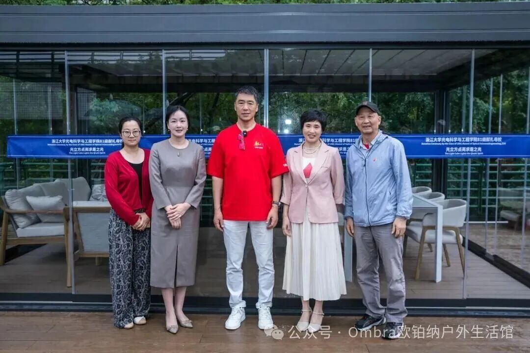 作为本次捐赠的核心推动者和代表,浙江大学光电学院81级校友、中艺股份董事长、欧铂纳品牌创始人李韧先生,分享了此次捐赠的初心。他指出,欧铂纳“光立方”智能观景棚的捐赠,是81级全体校友对母校深厚情怀的集中体现。以欧铂纳“光立方”回馈母校,不仅展现了求是学子饮水思源、心系母校的赤子情怀,更是将他们在光电领域深耕数十年前沿技术与深厚的人文关怀深度融合,旨在为美丽的浙大校园注入科技与文化的双重活力,为师生创造更富创意、更具品质的校园生活体验。