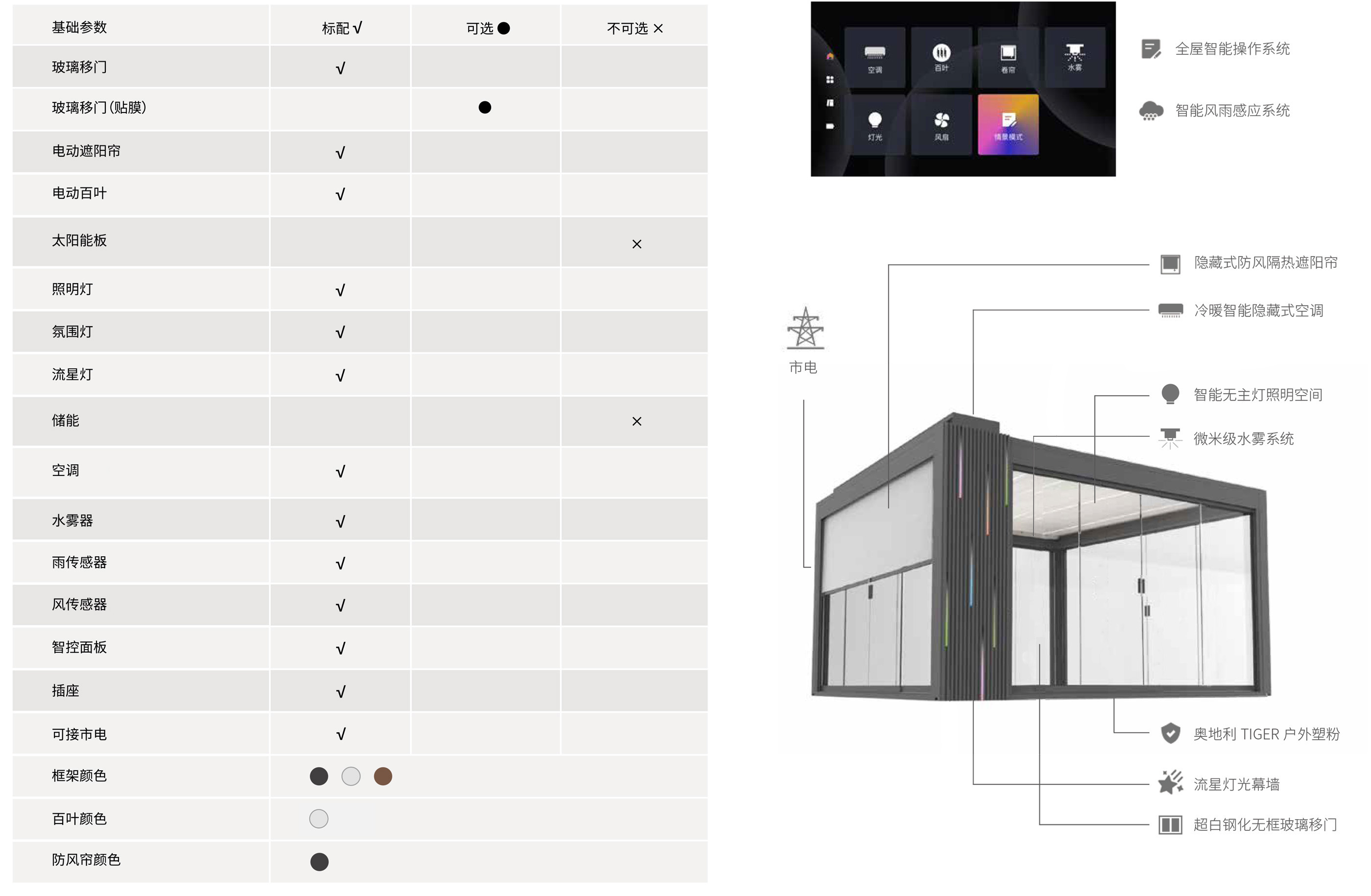 您可以在花园里享受生活,就像在房间里一样舒适。通过科技赋能让户外生活空间更智能,OMBRA欧铂纳智能观景棚提供不同的配置、颜色,更有多种型号可供选择,包括扩展型或独立型,满足客户的定制需求。
